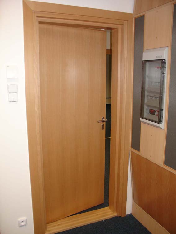 - Dvoufalcové akustické dveře (vlevo), jednofalcové akustické dveře (vpravo) – studio ČRo Leonardo Praha